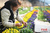 В центре выращивания съедобных декоративных цветов, расположенном в деревне Хунлянъин уезда Юйчжун провинции Ганьсу Северо-Западного Китая, работники ...