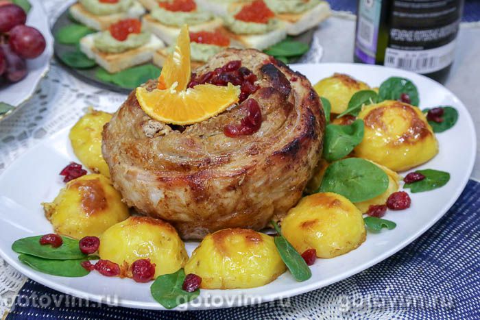клюква / Рулет из свиного подчеревка (пашины) с клюквой и мандаринами
